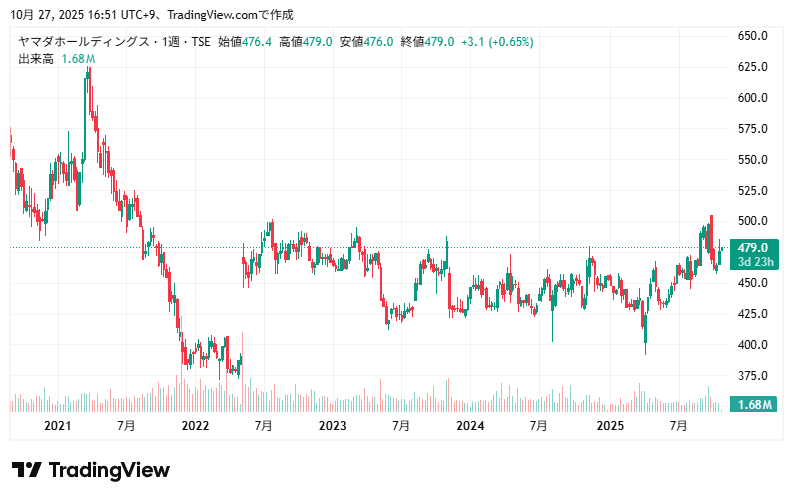 最新の株価参考:(株)ヤマダホールディングス【9831】:Yahoo!ファイナンス