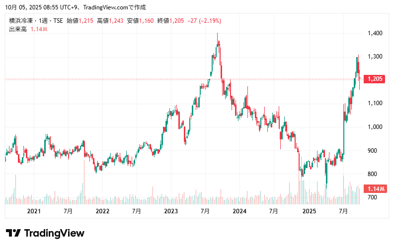 冷蔵倉庫大手で食品販売も行う横浜冷凍(2874)、株主優待制度は自社取り扱い商品を実施しています。株主優待に加え、株価指標と業績推移、株価チャートと配当推移を確認していきます。