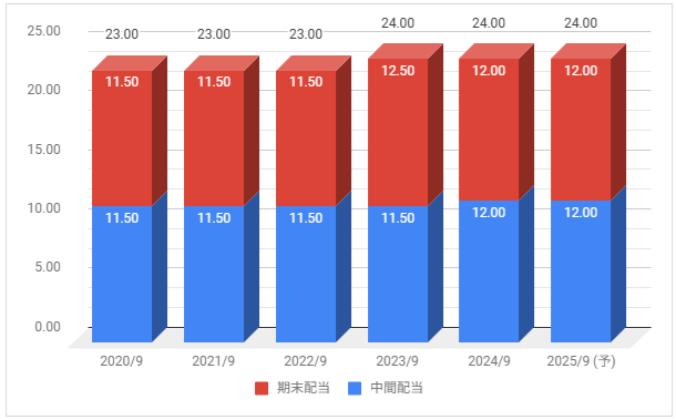 配当金は安定した推移、2025年9月期は据え置き予定としています。