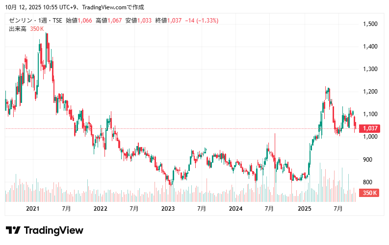 株価は2021年3月から下落し、2023年は下落が止まり緩やかな推移に。2025年は上昇推移していましたが、2025年5月以降は下落場面が出ています。